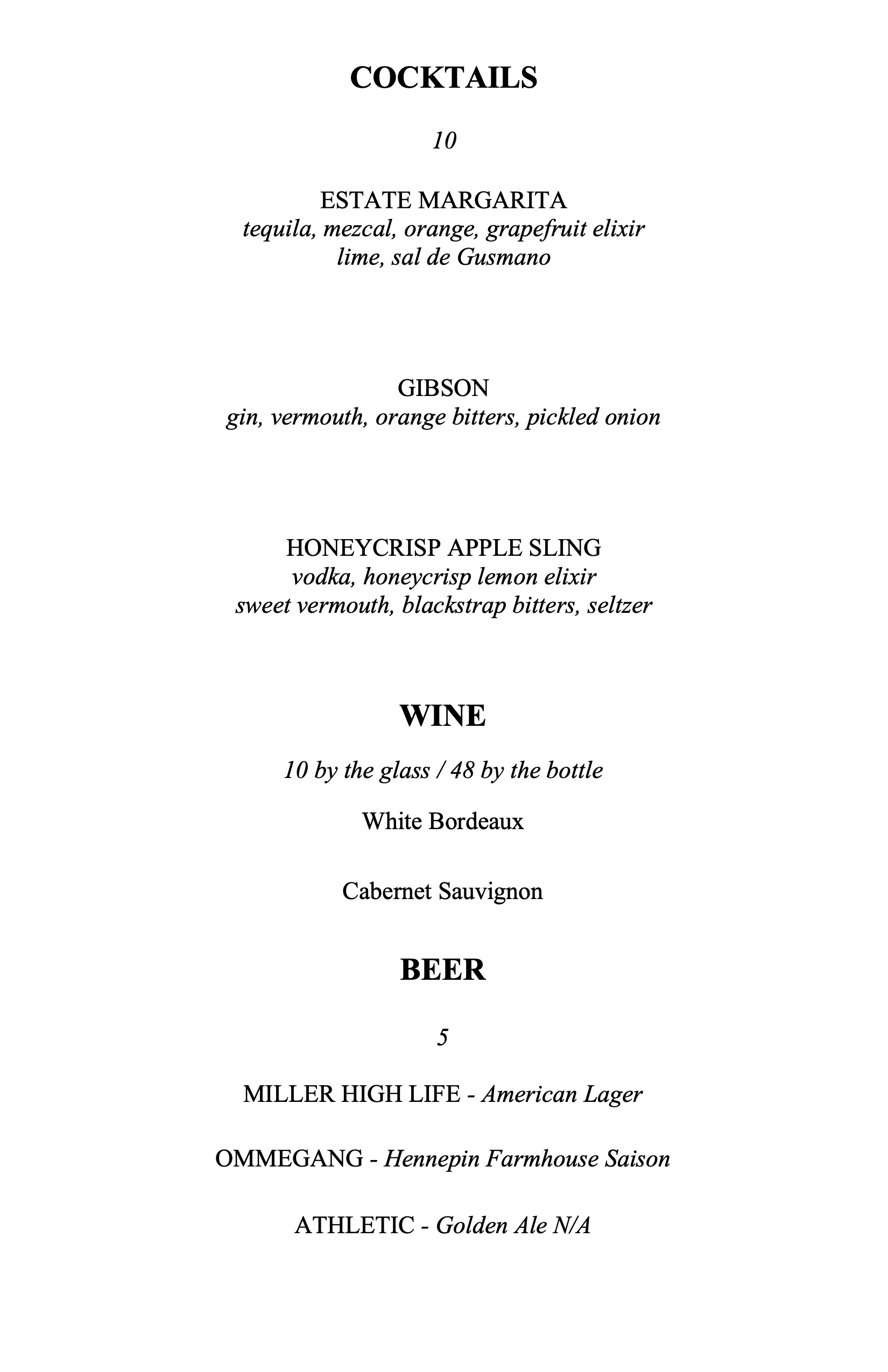 Bar Menu